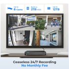 Continuous Recording - This unique feature allows 24/7 continuous recording. With a pre-installed 2TB HDD and up to 12TB storage capacity, you can record all day and night, ensuring you don't miss any important footage.