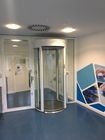 - Circular booth with sliding entrance and exit doors never opening simultaneously