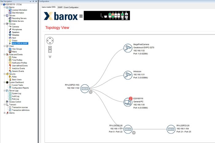 Due to their integrated Device Management System (DMS), barox products feature numerous helpful network monitoring functions which allow for the visualisation and analysis of all hardware and connectivity within a network In daily practice, DMS has stood the test of time and is now valued by video network installers and opera-