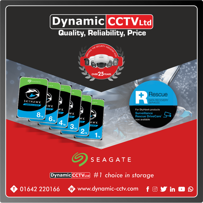 Dynamic CCTV Ltd pre-install SkyHawk Surveillance HDDs manufactured by Seagate into our solutions to ensure optimum functionality. SkyHawk Surveillance HDDs are smart, safe, secure and offer product protection services making them the go to choice for Dynamic CCTV Ltd.