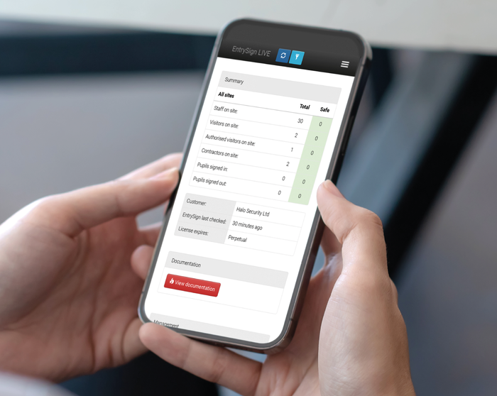 Complementing our fire alarm panel integration, EntrySign LIVE is our evacuation roll call service. In the event of a fire, EntrySign LIVE allows you to quickly identify those requiring assistance, swiftly mark people as safe and easily access your fire risk assessment, improving safety and compliance.