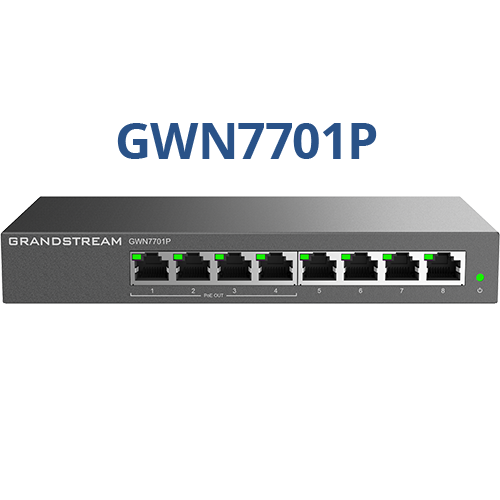- 5/8/16/24/48 Gigabit RJ45 ports, 4 port PoE+ output (GWN7700P & GWN7701P), 8 port PoE+ output (GWN7701PA & GWN7702P)