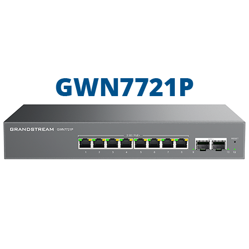 The GWN7721 and GWN7721P are 10-port Layer 2 Lite Managed Switches equipped with 8 2.5-Gigabit Ethernet ports and 2 10-Gigabit SFP+ ports to allow small-to-medium businesses to build scalable and secure high-speed networks.