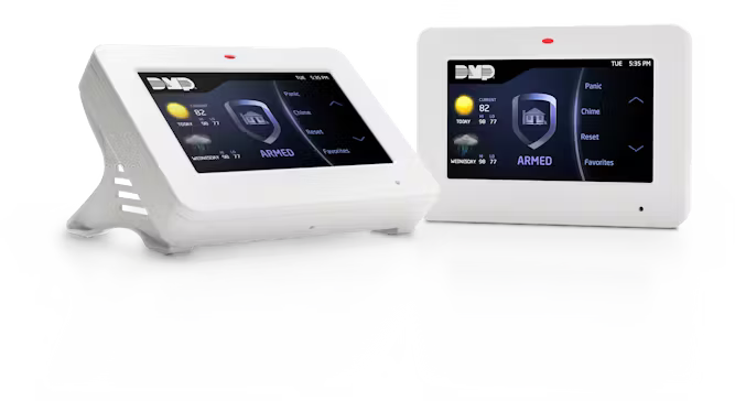 Features an easy-to-use interactive shield allowing quick arming and disarming without touching the screens to enter codes.