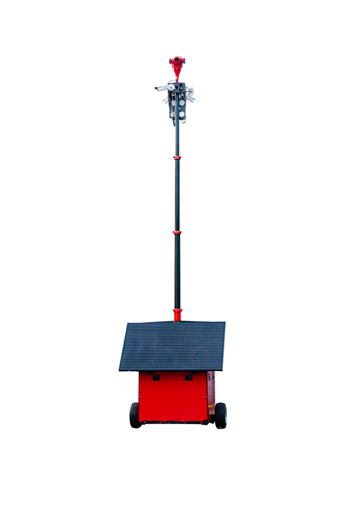 RedCop™ has a PTZ camera and up to four fixed cameras for video surveillance and PIR detectors for alerting operators to any site intrusion. It has a 72 hour battery life, so it can be used where mains power is limited or non-existent. RedCop™ has wheels, so it can be easily moved around a site as surveillance requirements change