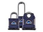 A range of super-tough, high security padlocks tested to the limits in-house and approved by independent accreditation bodies CEN, LPCB, Sold Secure and Secured by Design. Made in Britain, these padlocks come in a variety of body widths and shackle versions.