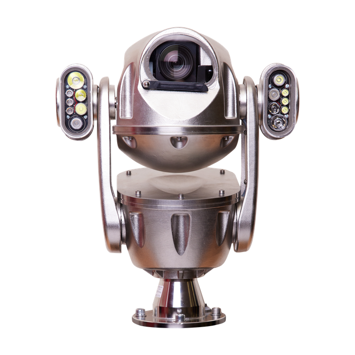 The X3-STORM Hybrid ultra-rugged ball PTZ camera is designed for extreme environment surveillance applications. The camera body is precision-manufactured from Electropolished 316 Stainless-Steel, with toughened glass windows (Polycarbonate optional), making it highly resistant to vandalism and demanding environmental conditions. It has a long-life silicone wiper as standard and high efficiency, adaptive, long-range white-light and IR LED illumination as options, for exceptional night-time and low-light operation.