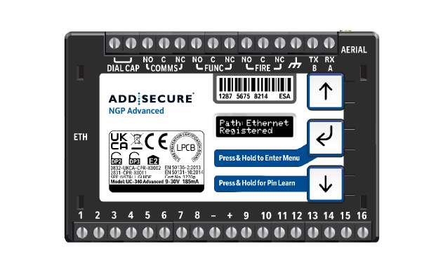 The primary path sends alarm signals over the customer’s network or broadband with DP2 performance (better than the old Grade 3), reporting path faults to the ARC within 30 minutes.