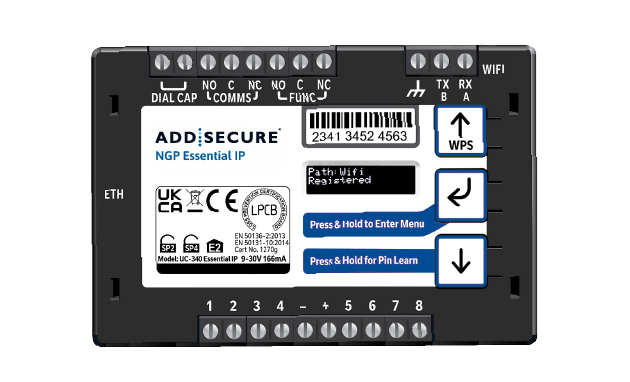 Essential IP makes upgrading old dial-up PSTN systems easy andcost effective, with no upfront cost. It connects to your customers’ broadband over Ethernet or wi-fi for a speedy install. It exceeds SP2 or SP4 performance levels (equivalent to the old Grade 2 or Grade 4), so it reports path faults to the ARC, much faster than traditional digi communicators. Making it the perfect set-up for future-proofing low-medium risk premises.